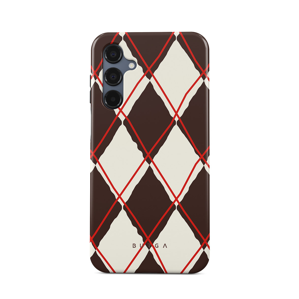 Denna design har: diamantmönster, brunt och cream, klassiskt mönster, geometriskt mönster