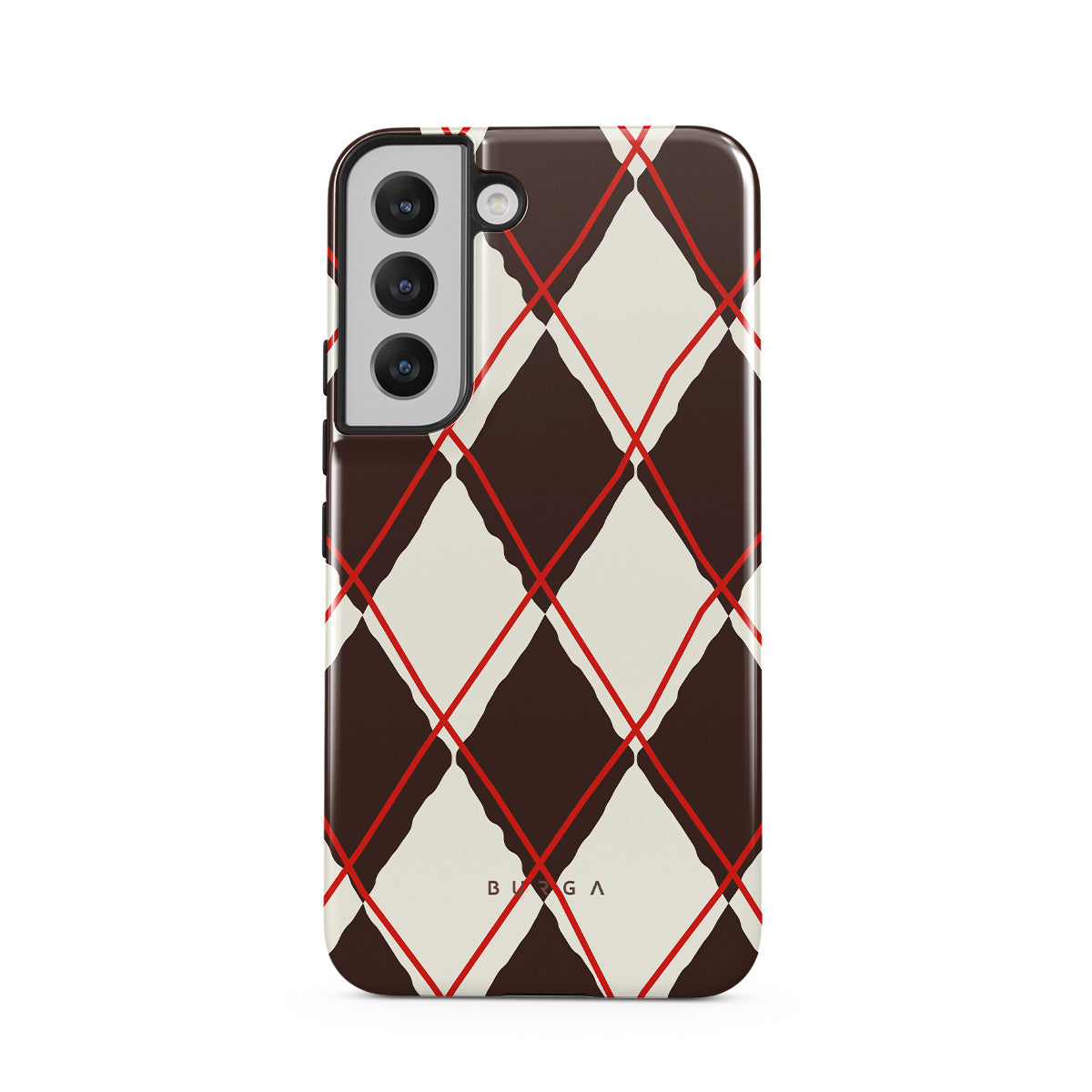 Denna design har: diamantmönster, brunt och cream, klassiskt mönster, geometriskt mönster