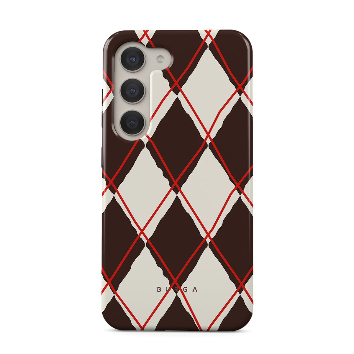 Denna design har: diamantmönster, brunt och cream, klassiskt mönster, geometriskt mönster