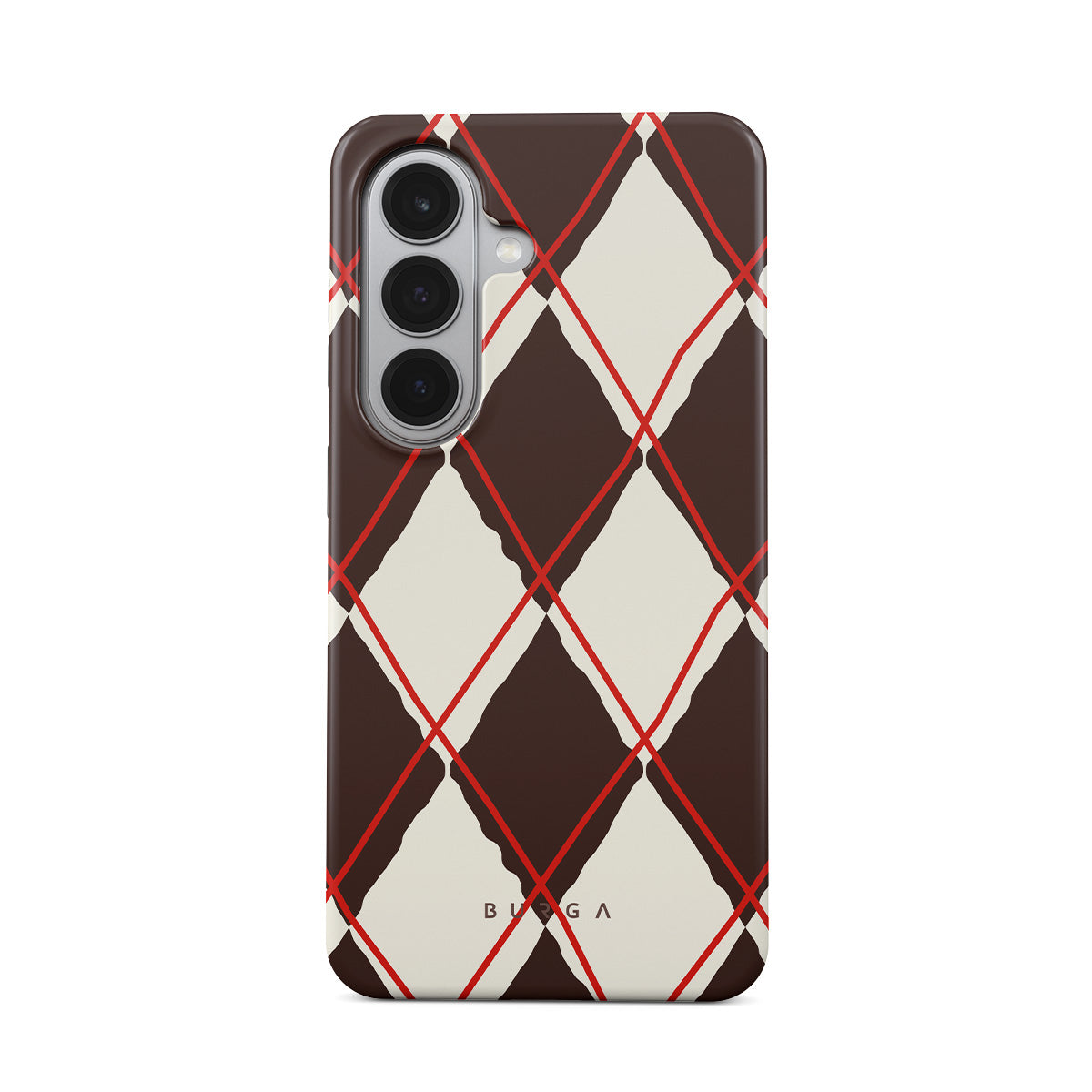 Denna design har: diamantmönster, brunt och cream, klassiskt mönster, geometriskt mönster