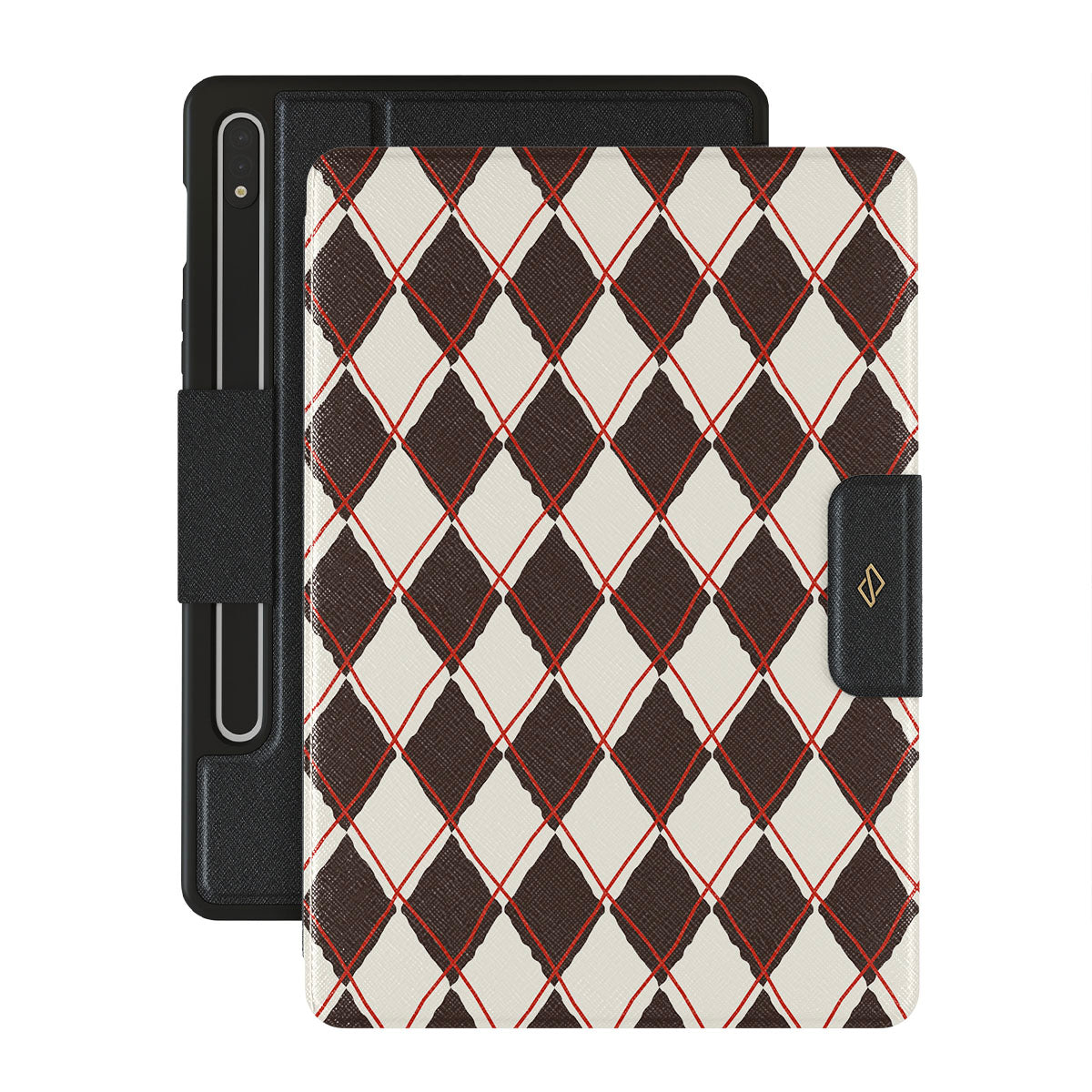 Inbyggd S-pen hållare. • Utsida i veganskt Saffiano läder.