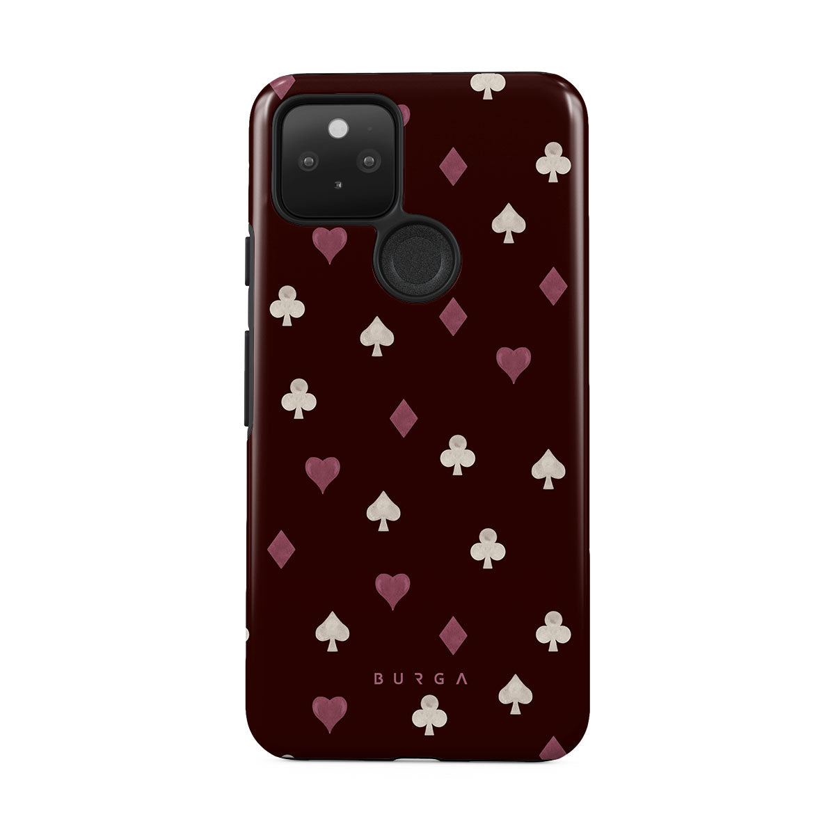 Den här stilen har: kortsymboler, hjärtan, spader, ruter, klöver, vinröd bakgrund