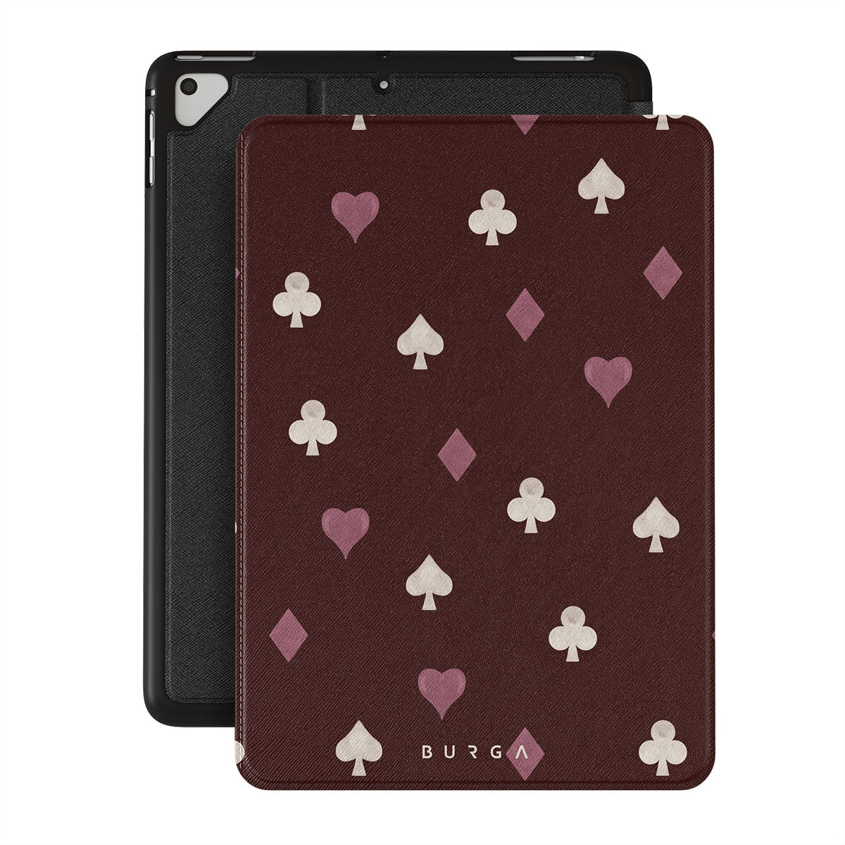 Den här stilen har: kortsymboler, hjärtan, spader, ruter, klöver, vinröd bakgrund