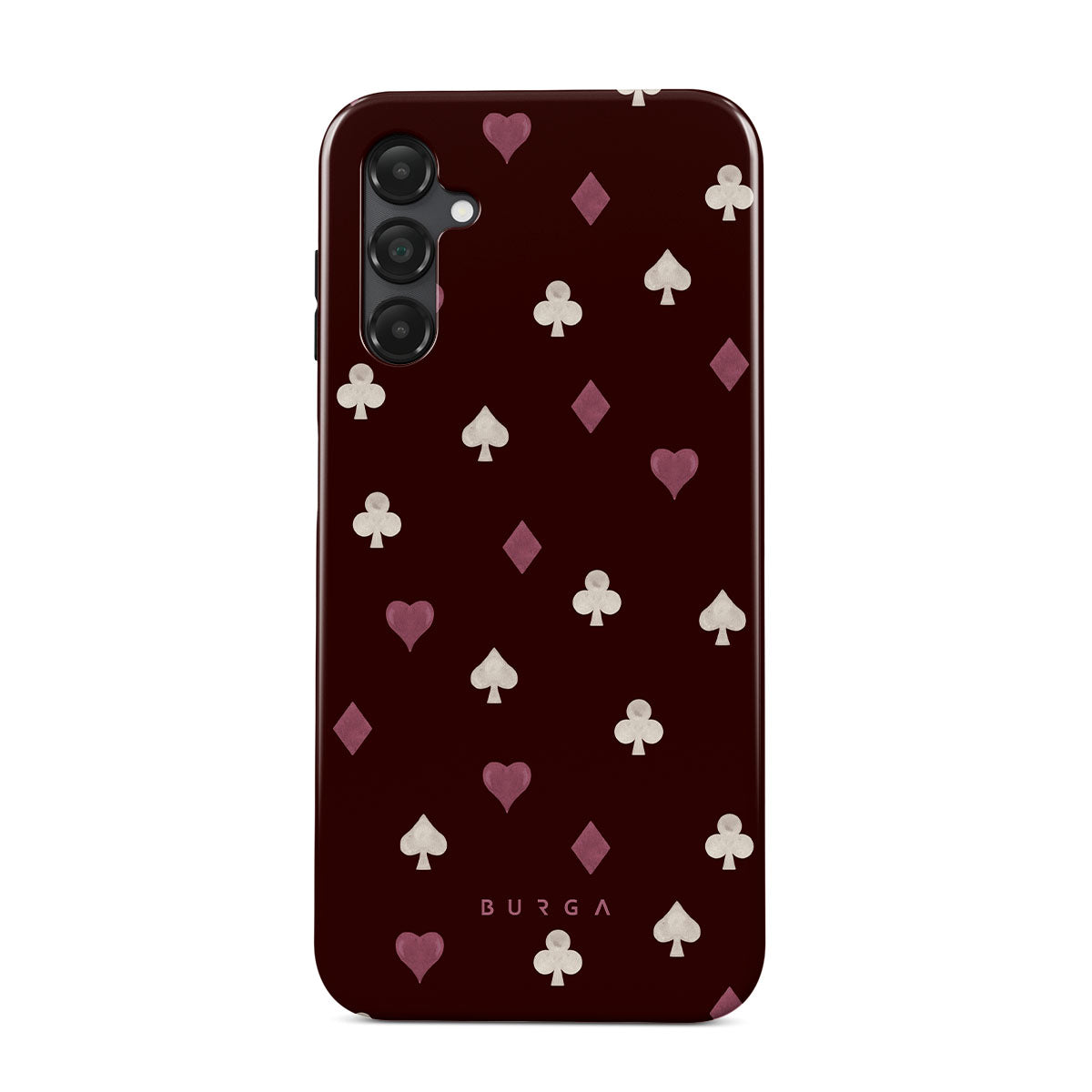 Den här stilen har: kortsymboler, hjärtan, spader, ruter, klöver, vinröd bakgrund