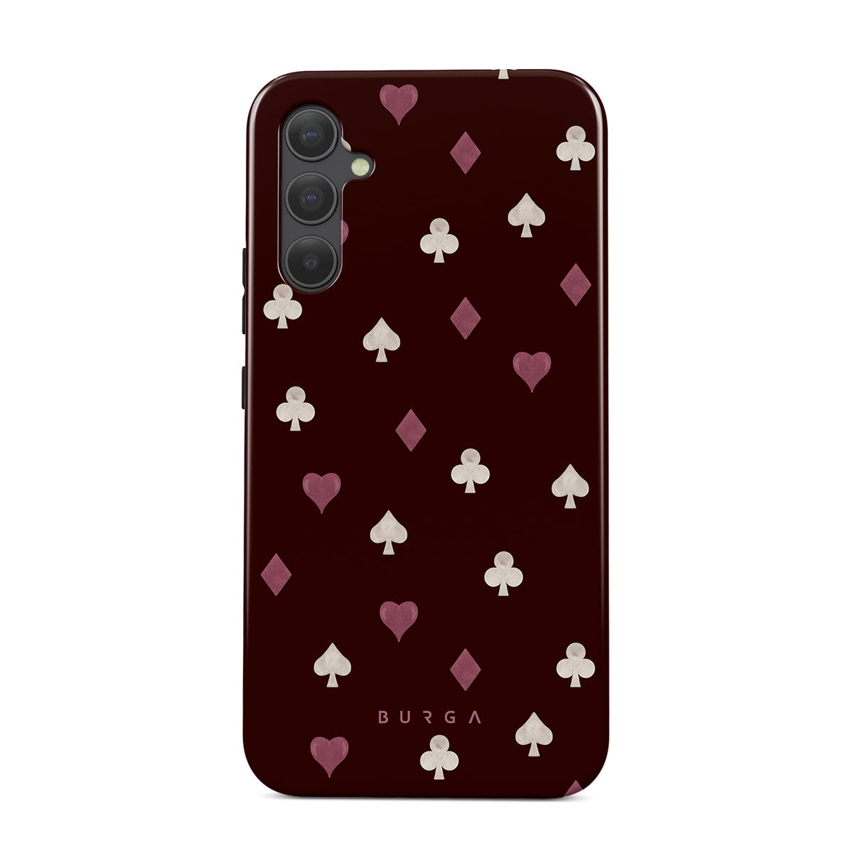 Den här stilen har: kortsymboler, hjärtan, spader, ruter, klöver, vinröd bakgrund