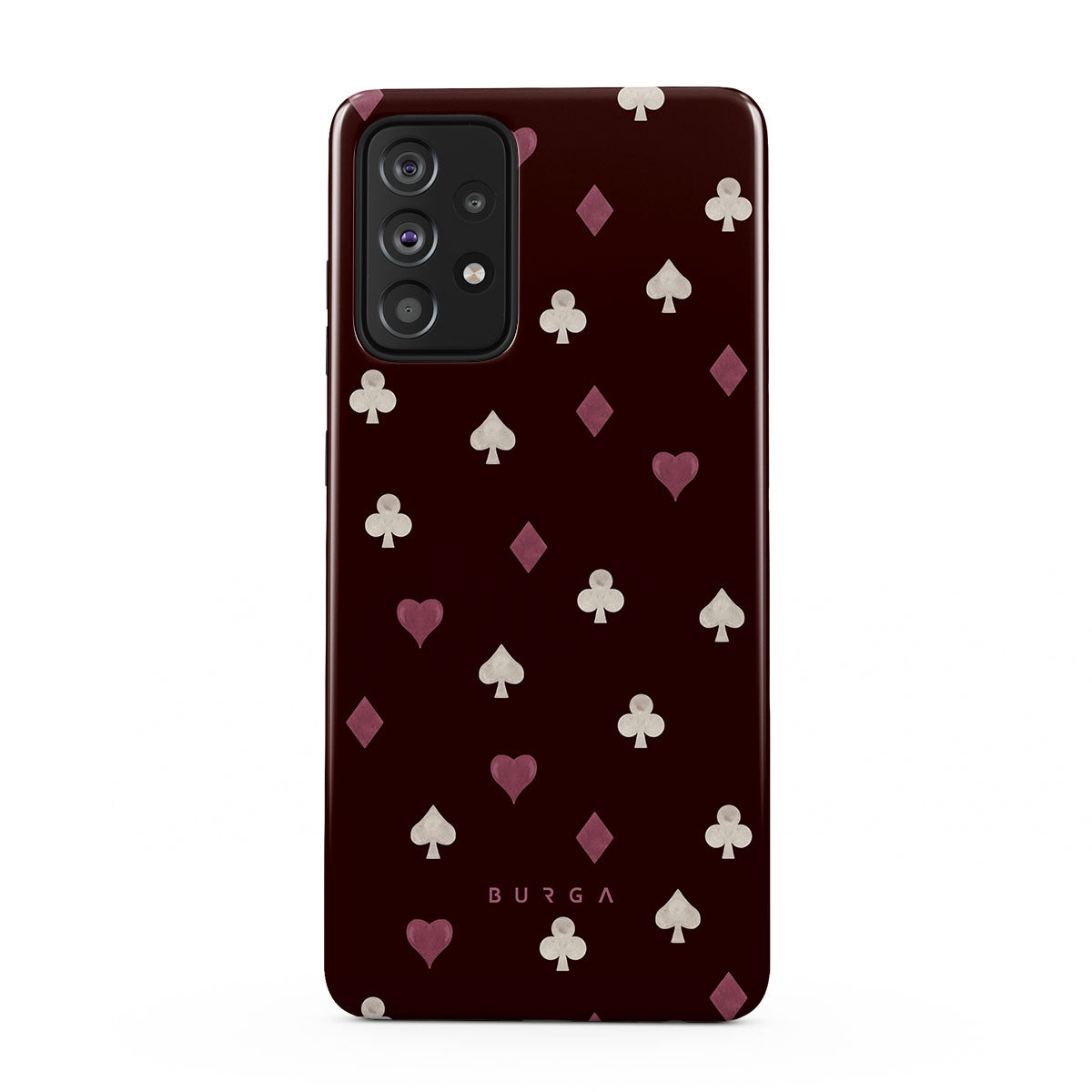 Den här stilen har: kortsymboler, hjärtan, spader, ruter, klöver, vinröd bakgrund