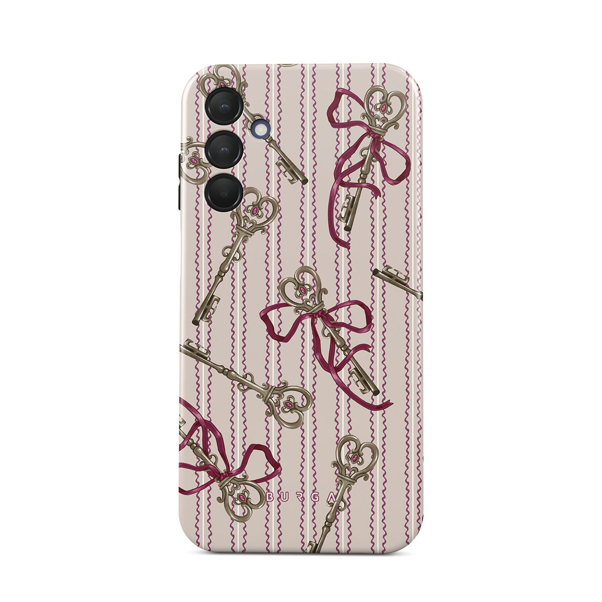 Den här stilen har: antika nycklar, rosetter, rosa band, randig bakgrund
