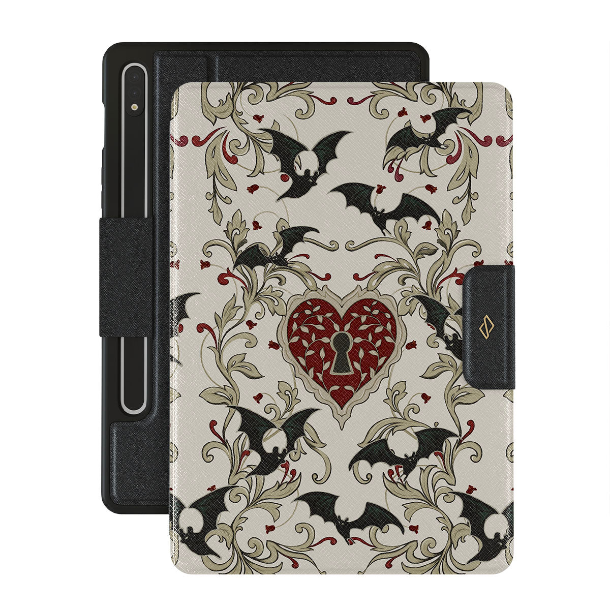 Denna design har: hjärta, lås, fladdermöss, gotiska motiv