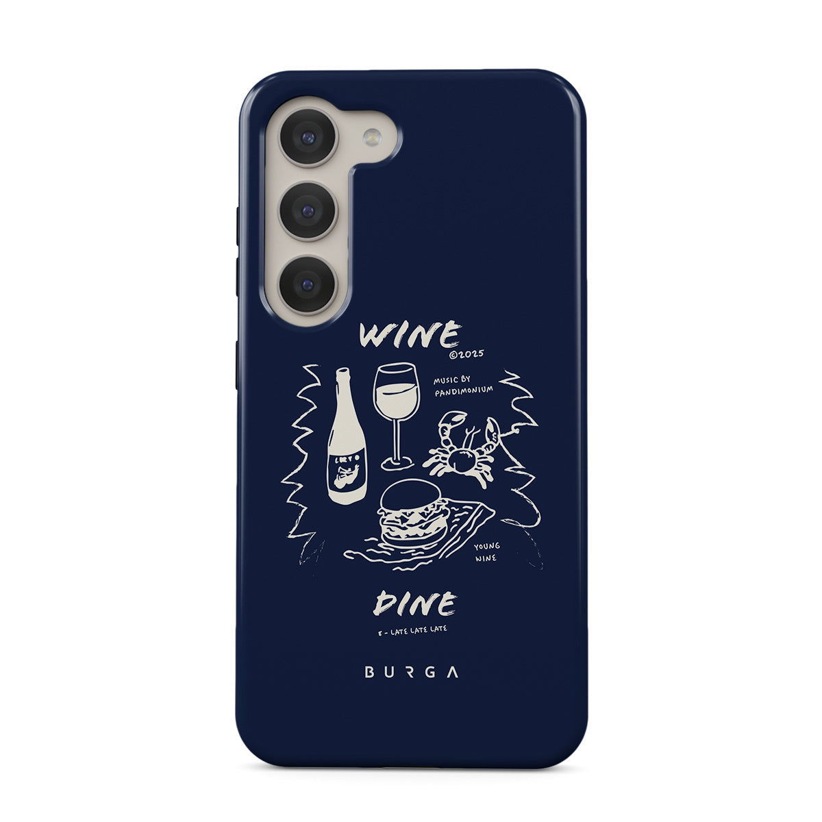 Denna design har: vinglas, mat, middag, minimalistiska illustrationer, text