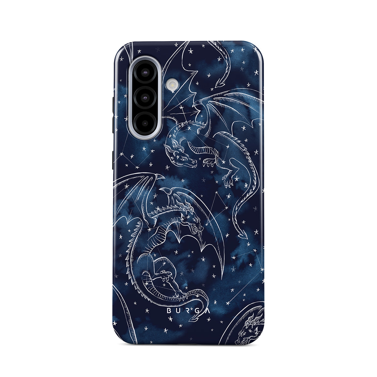 Denna design har: drakar, stjärnor, konstellationer, mörkblå himmel