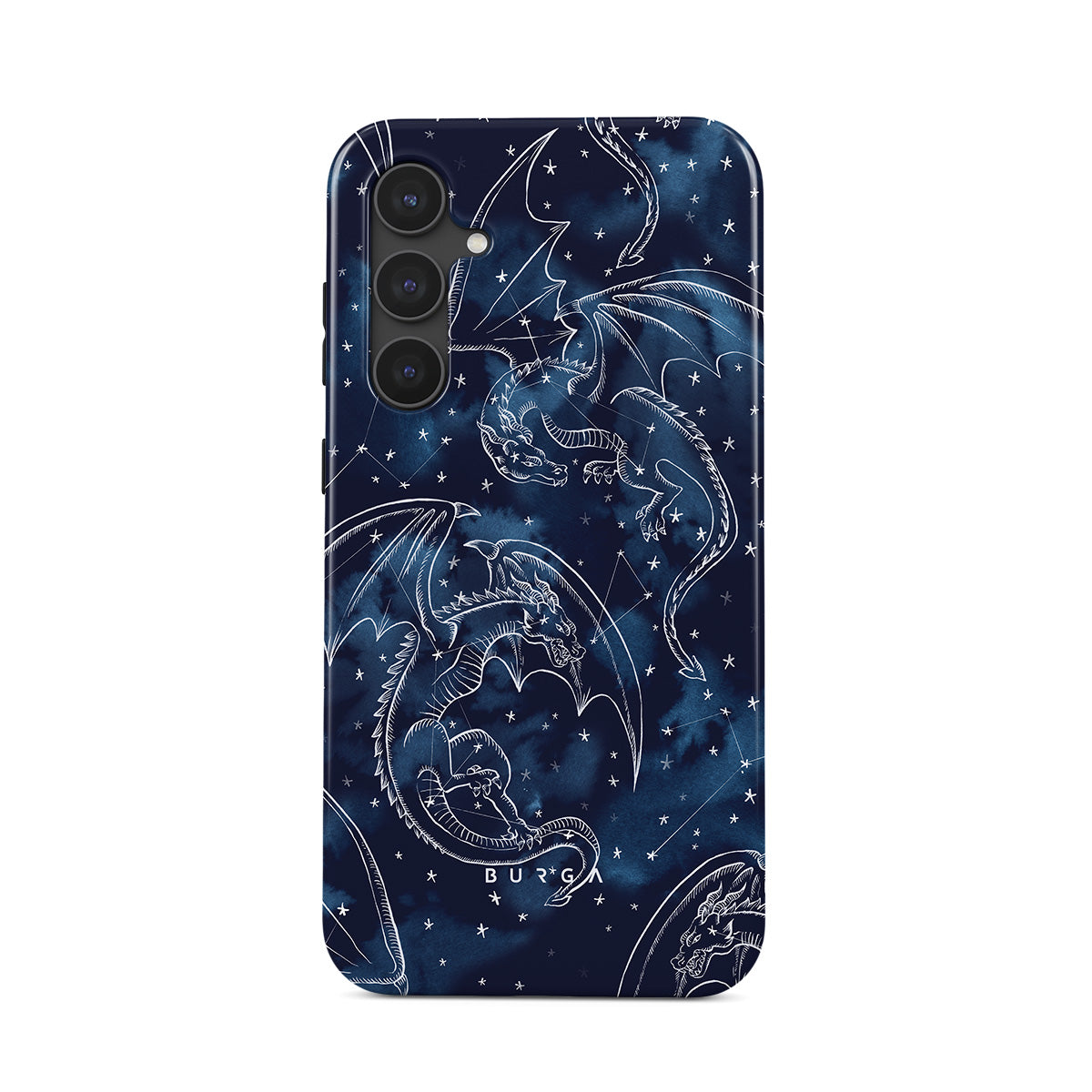 Denna design har: drakar, stjärnor, konstellationer, mörkblå himmel